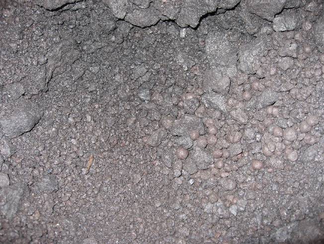 塊狀區(qū)呈現(xiàn)出原料和焦炭混合的情況,料線越深,混合的程度越明顯。主要原因是爐料在下降的過(guò)程中,焦層和礦層除了向下運(yùn)動(dòng)之外,還存在著由于橫斷面變大而引起的徑向運(yùn)動(dòng)。從爐料自身的運(yùn)動(dòng)情況來(lái)看,還存在爐料由于侵蝕、破損等情況引起的塌陷、密實(shí)等情況。